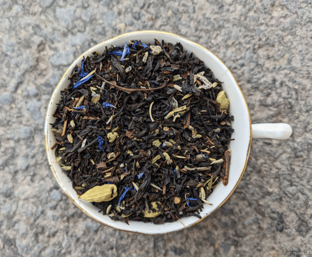 Ingredients: Earl Grey Black Tea, Lapsang Souchong Smoked black tea, lavender buds, sage, rosemary, peppermint, & cardamom.