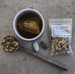 Made with orange infused gunpowder green tea, chamomile, ginger, and house dried oranges.