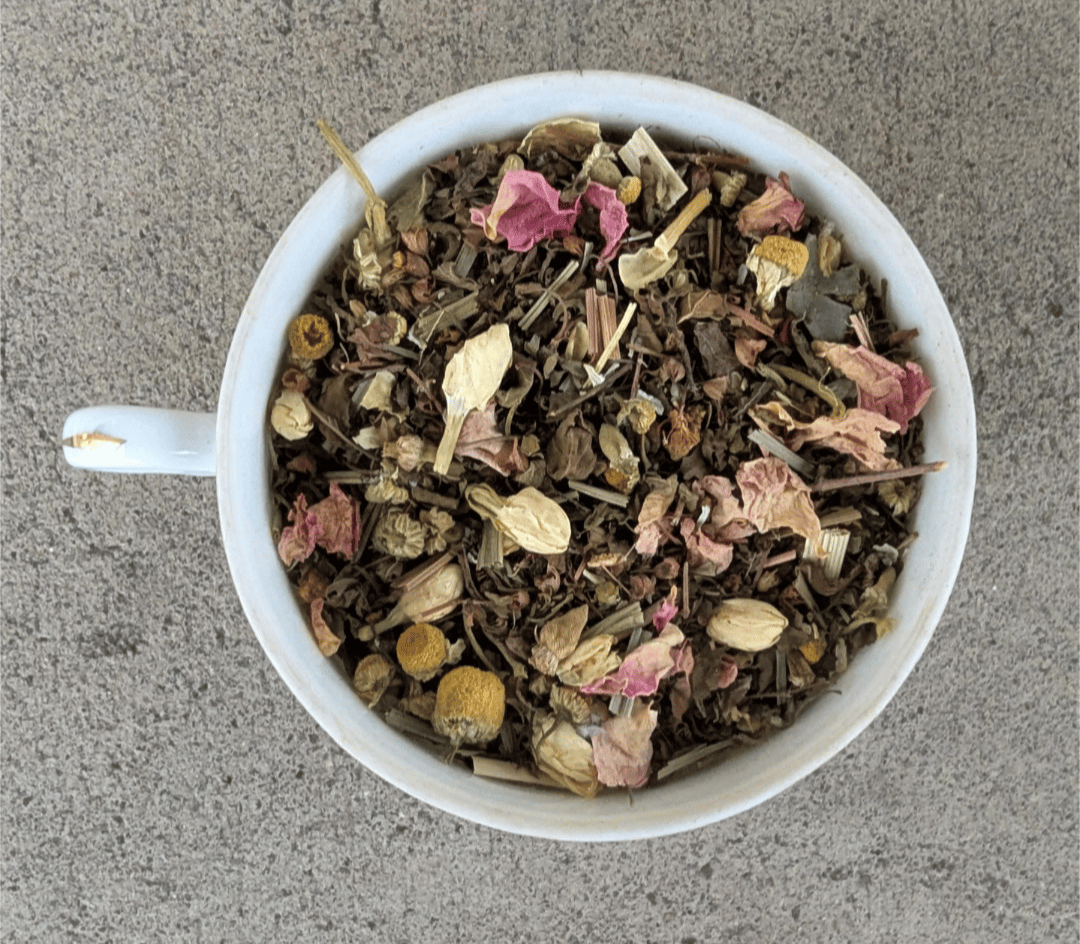 This teas has small bits of herbs so does best in a tea bag or a non-mesh strainer.