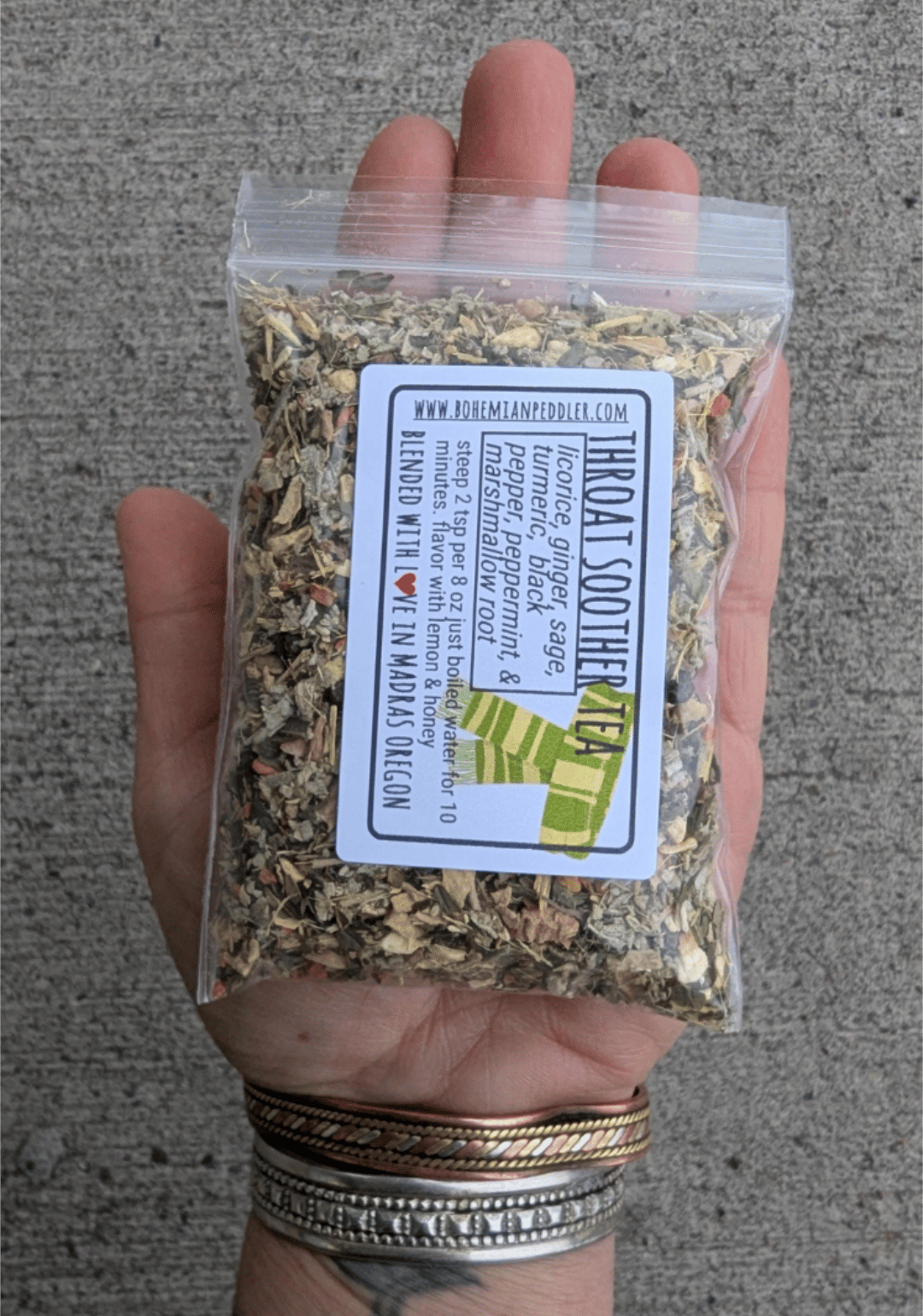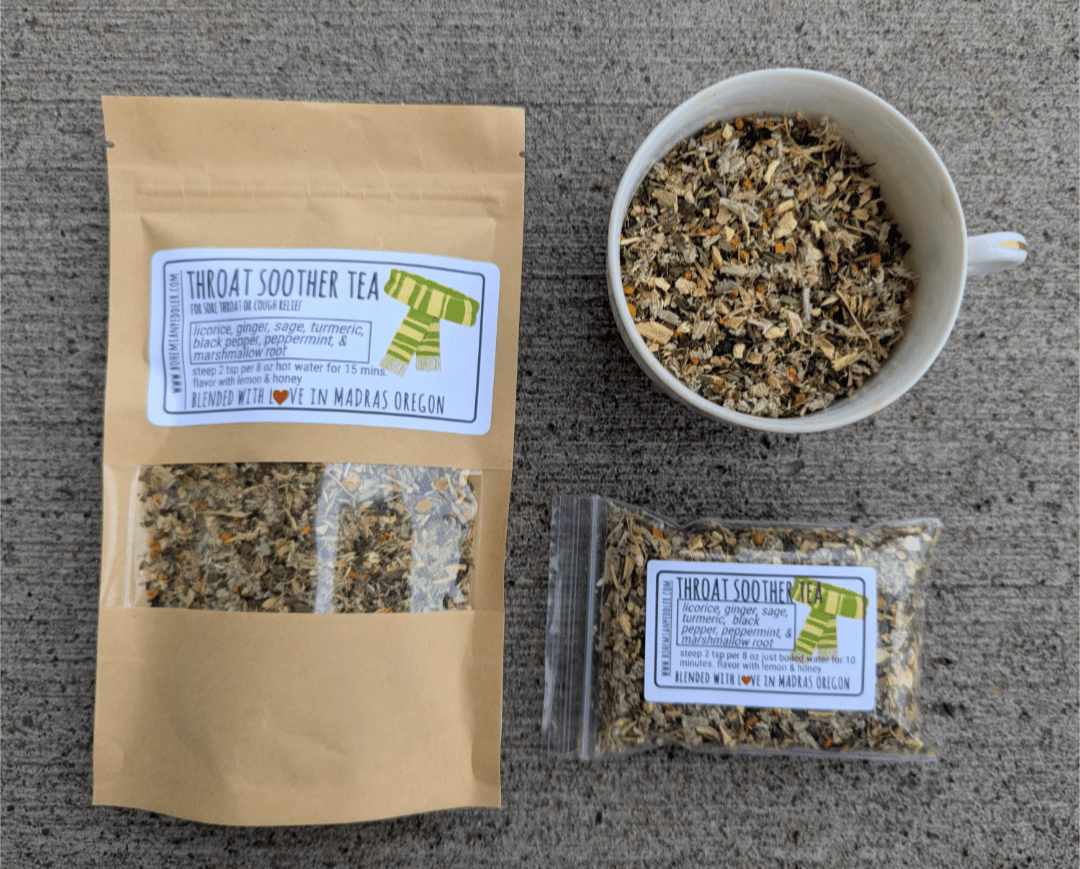Ingredients ~ licorice root, ginger, sage, peppermint, marshmallow root, turmeric, black peppercorns