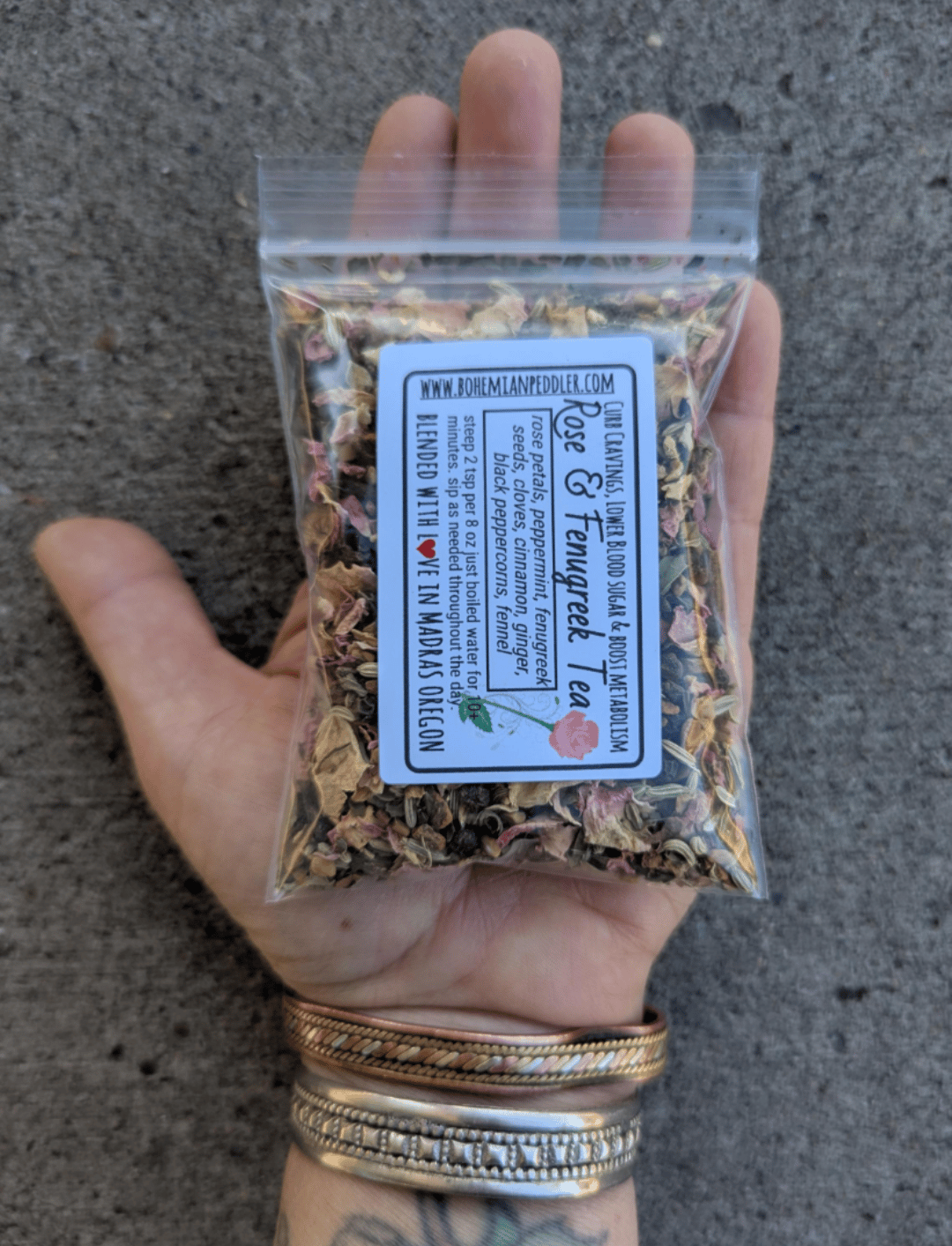 Rose & Fenugreek tea boosts metabolism, lowers blood sugar, and helps to curb cravings. This unique "floral spice" tea is a delicious morning, noon, or night snack tea.